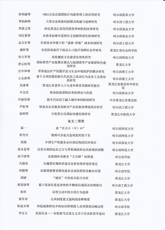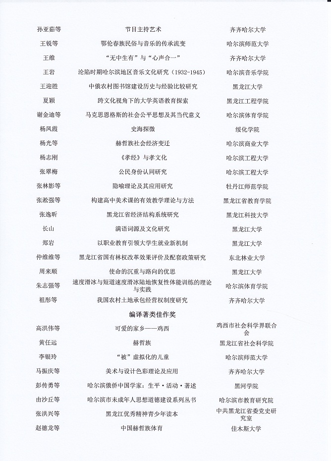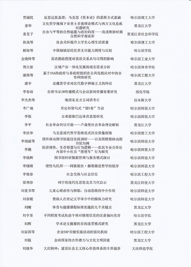 黑龙江省第十七届社会科学优秀成果奖评选结果公示